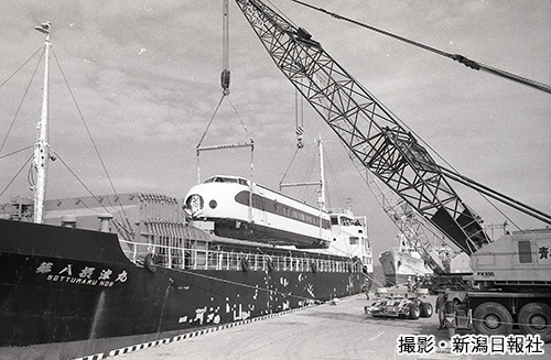 上越新幹線の新潟-大宮間開業は1982年11月。その2年前、80年9月に新潟西港に200系が陸揚げされた。