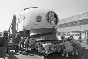新幹線車両陸揚げ