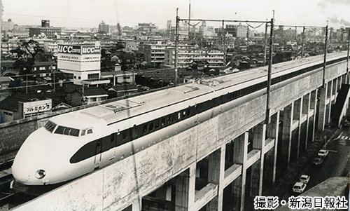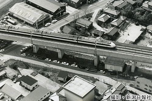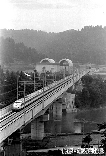 開業まで約1年となった1981年9月30日、新幹線の試験車両は初めて長岡以南を走った。旧川口町の和南津付近。