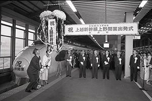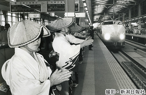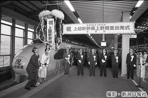 着工から13年。「上野開業」の日を迎えて新潟駅を出発する新幹線(1985年3月14日)