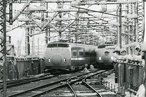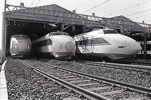 新幹線第1運転所で開かれた「新幹線フェスティバル」。100系、200系、ドクターイエローなどが勢ぞろいした(1987年10月4日)