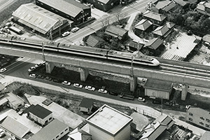 新潟市中央区鳥屋野付近の高架を疾走する200系(1988年)