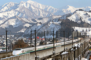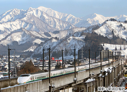 豪雪をものともせずに長岡を快走する200系