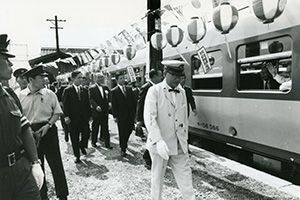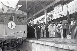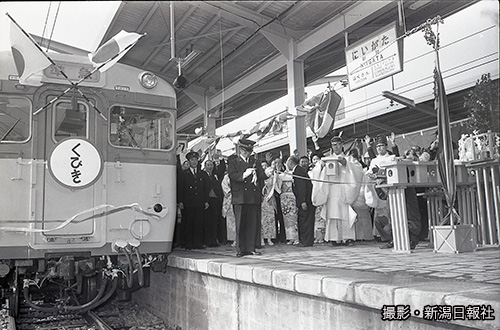 1972年10月2日のダイヤ改正で、只見線にも急行「奥只見」が走ることになった。会津方面から上野に出る時間が大幅に短縮されたという(小出駅で開かれた出発式)