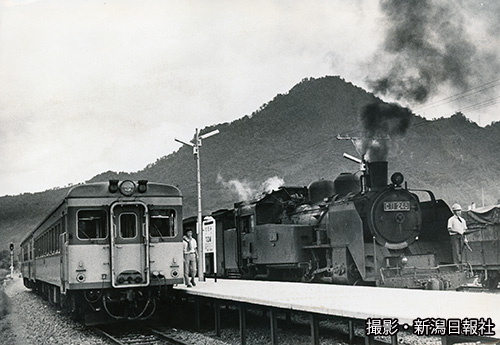 只見駅で並んだ気動車とC11