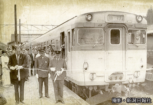 新潟―長野間に新型の「キハ52」を導入するにあたり、性能を確認する試運転を行った。エンジンが強く、峠越えも難なくこなしたと当時の記事にある(1960年10月1日、長野駅)