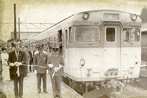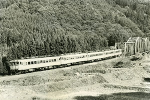 只見線の大白川―只見が開通し、小出―会津若松の全線がつながった。小出駅で開かれた発車式には田中角栄首相も出席した。写真はキハ58566(1971年8月29日)