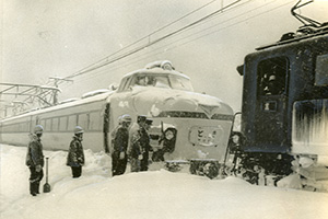 1966年1月17日からの寒波で、上り特急「第一とき」は19日午前9時40分ごろ、上越線の五日町-六日町間で電源故障のために立ち往生。石打から機関車が救援に向かった。翌20日付け本紙によれば、羽越線も大幅にダイヤが乱れ、上り特急「白鳥」が2時間遅れたほか、上り急行「しらゆき」、同「鳥海」、下り急行「しらゆき」などが1時間から2時間遅れたなどと報じられている。雪国の鉄道を支える苦労は昔も今も変わらない。