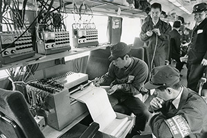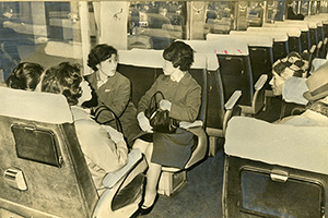 1981年2月の特急「とき」車内の風景である。車内販売を担当する女性は2人体制。ワゴン上段の雑誌の表紙を見ると、「平凡パンチ」「週刊新潮」「女性セブン」などのタイトルが並ぶ。下段にはミカンらしきもの、缶ジュースがのぞいている。翌年には上越新幹線の開業が控えていた。「とき」で上野まで4時間以上かかっていた旅は、新幹線によって大宮まで2時間弱に短縮されることになる。のんびりと車内販売のワゴンで品選びする旅が、ちょっと懐かしい。