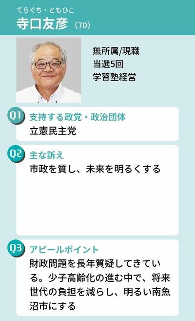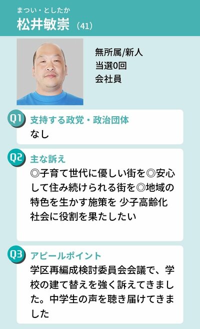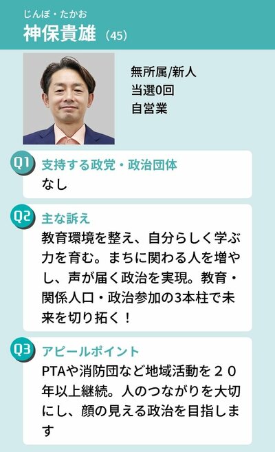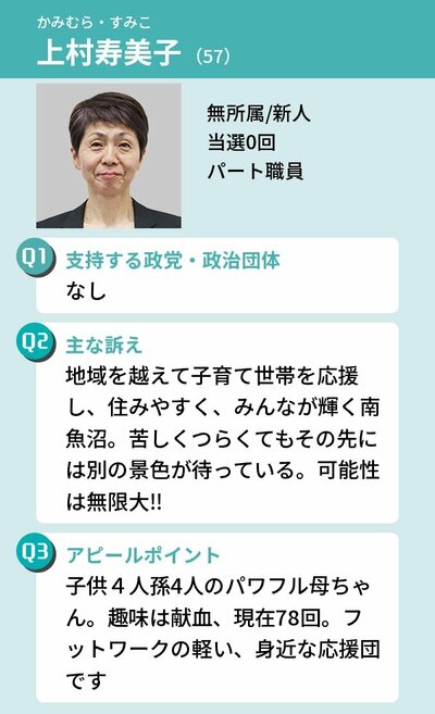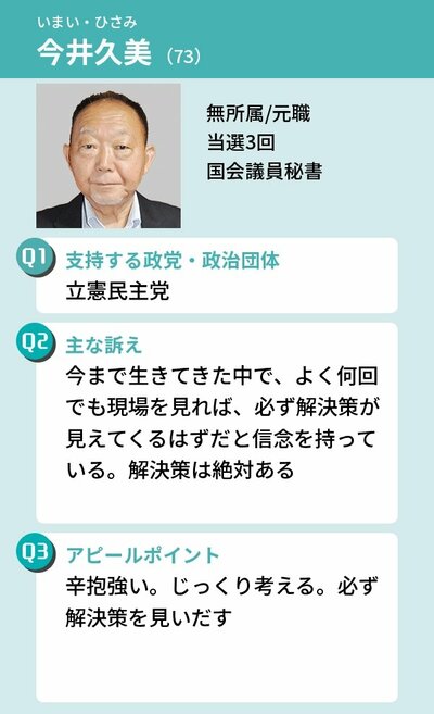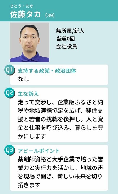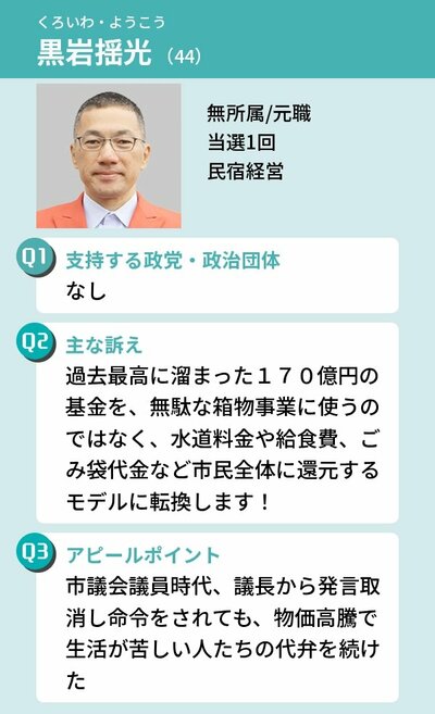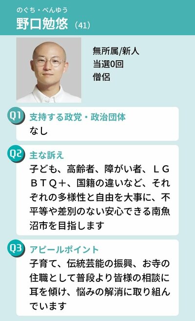 - 候補者の経歴などは本人の回答や選管の発表に基づくものです。