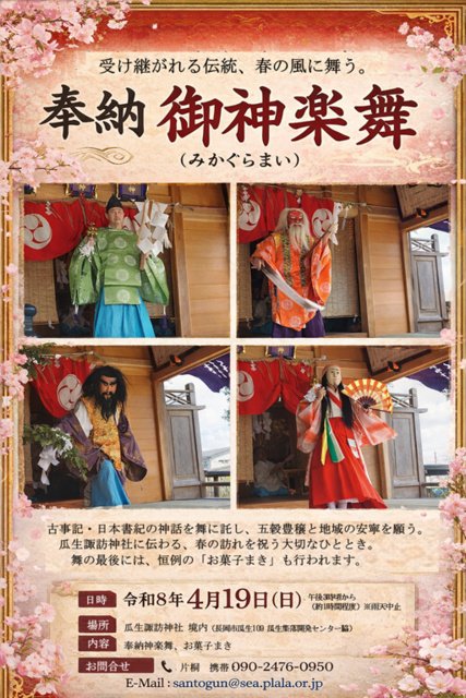 瓜生諏訪神社春の大祭での御神楽舞奉納