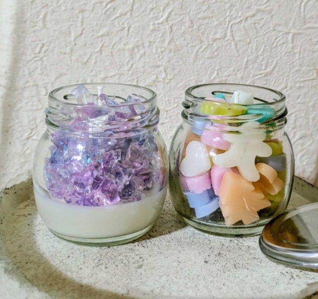 「ぷにぷにカラフルな宝石キャンドル」と「動物やクリスマスパーツを詰めるボトル入りキャンドル」の選べる2種類のキャンドル作りができる教室を開催する。
