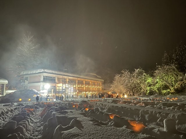 雪の中にキャンドルが揺れる幻想的な空間