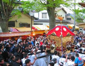 三条の鎮守、八幡宮の春季大祭として催される三条まつりは10万石の格式をもつ大名行列で知られる伝統行事。天狗様や神輿が商店街を練り歩く大名行列の後は、親が、無事成長を祈って2~3歳の子どもを肩車に乗せ、神輿、太鼓とともに八幡宮社殿を3周して拝殿に納まる「舞込」が行われ、毎年多くの観光客を集めている。100店以上の露店が出店する。