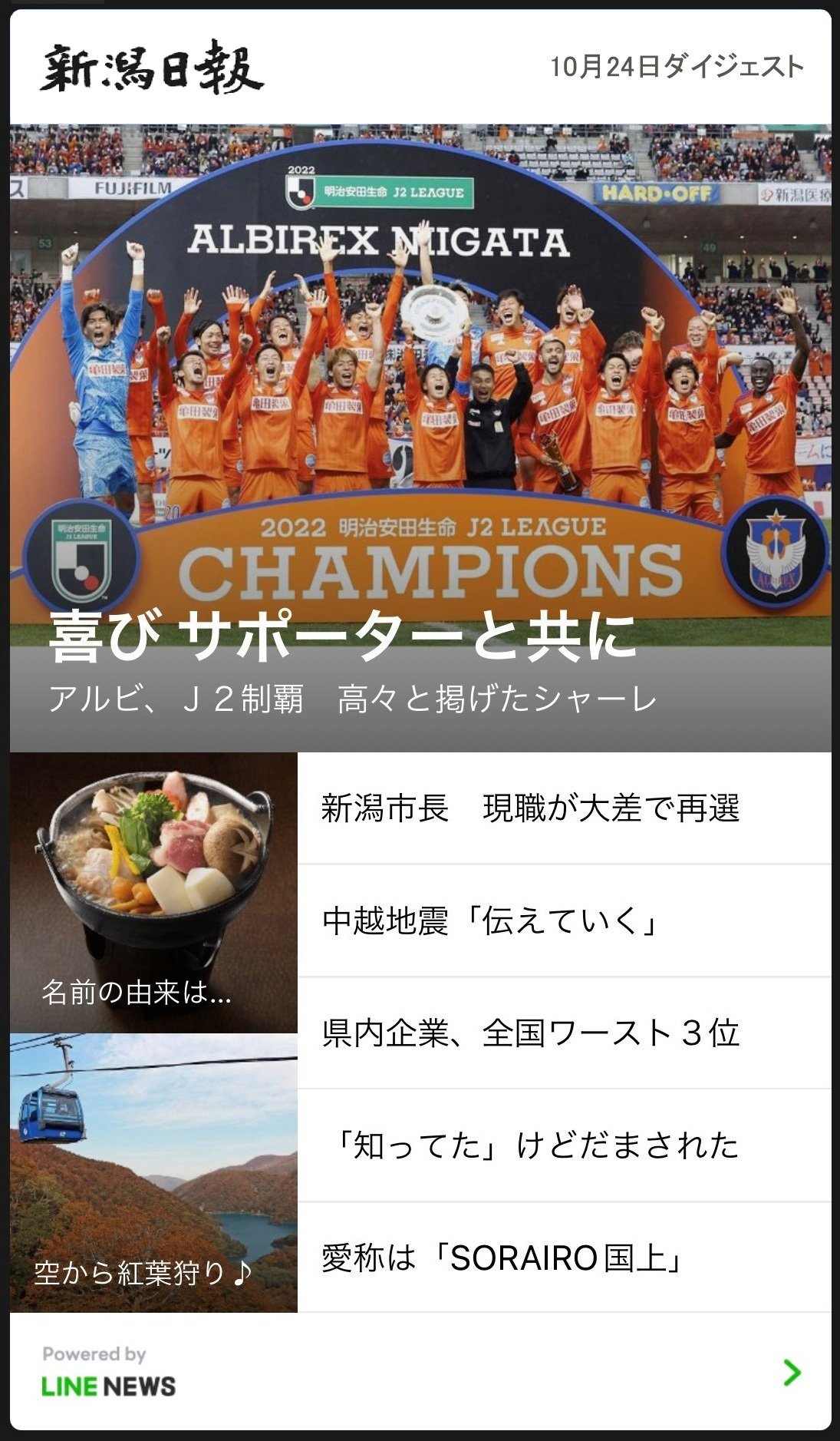 新潟日報社は無料通話・メールアプリ「LINE(ライン)」で、ニュースを配信しています。新潟のまとめ情報をサクッとチェックできます。