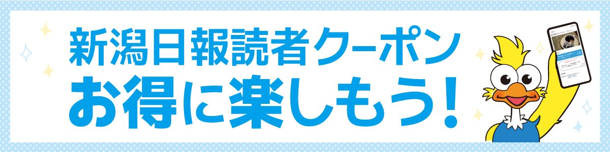 新潟日報朝刊をご購読の方や、有料の新潟日報デジタルサービス(レギュラープラン、レギュラー学割プラン、ライトプラン)をご契約の方は、「新潟日報 読者クーポン」がご利用いただけます!
