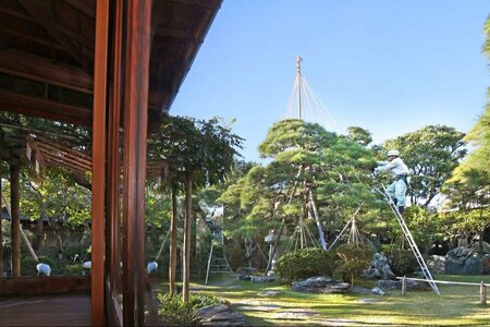 【動画あり】「雪つり」で庭園に冬支度、木々を守り景観引き立て…旧小澤家住宅の冬囲い 写真連載[にいがた新白景]11月編~新潟市中央区~