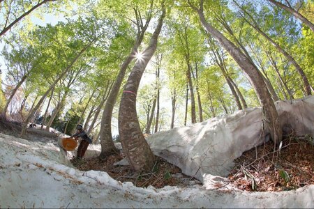 福島県境と接し、今冬は5メートルもの積雪となった魚沼市大白川。立夏を過ぎても、標高約550メートルのブナ林にはまだ雪が残っていた。...