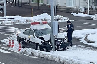 パトカーが信号柱に衝突、新潟市東区…近隣住民「雪で滑っているようには見えなかった」 社会 事件・事故・裁判 29日午後5時前、新潟市東区東明1の信号柱に、新潟東署の警察官が運転するパトカーが衝突した。けが人はいなかった。