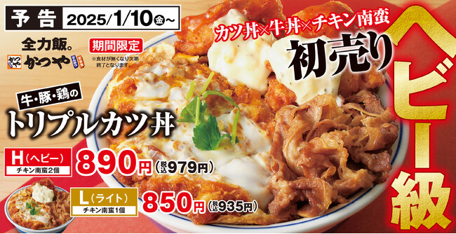 【挑戦求む】かつやの初売りはヘビー級!「牛・豚・鶏のトリプルカツ丼」2025年1月10日(金)新登場