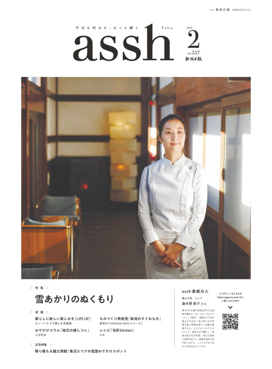 assh表紙の人インタビューや、映画・音楽など、 webでしか読めないオリジナル連載もそろえます。 ぜひご覧ください。 https://assh.niigata-nippo.co.jp/
