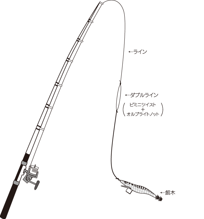 - 8~9ftのエギ専用竿か7ft前後のバスロッド