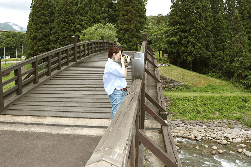 「面白い」。1級河川の関川に架かる一之橋は昔の国境だ。今も妙高市関川と長野県信濃町の境界になっている。リュウさんには新鮮に映ったようで「新潟県」「長野県」の標識を写真に収めていた。