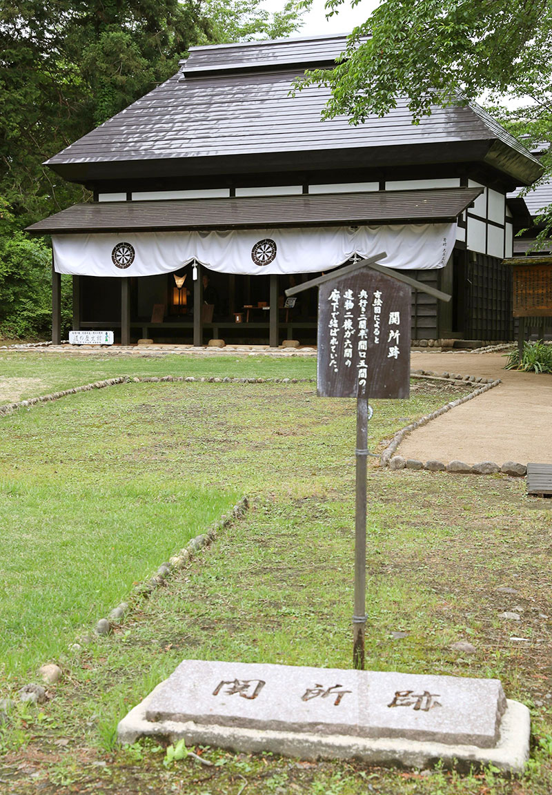 関川の関所跡地。高田藩士が取り調べをした番所が再現されている