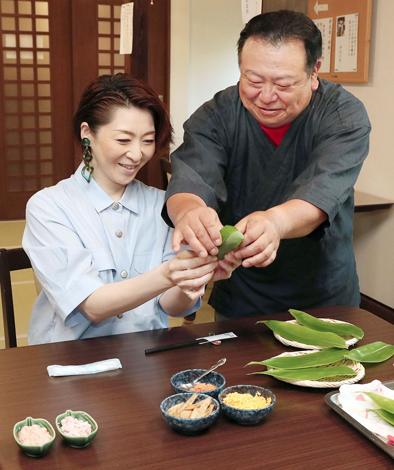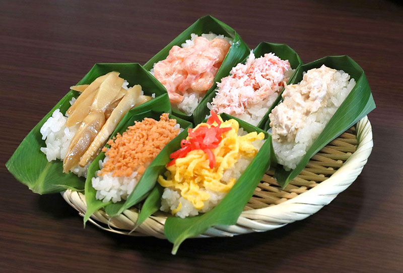 笹ずしの具材は、シイタケやゼンマイなど茶色系が多い。地元の杉野沢観光協会長も務める鴨井さんは、急増する訪日観光客や若者向けに近年、緑のササに映えるカニやエビなども具にしている。「妙高は高い山があって海にも近い。美しい地元の海と山を食でもアピールしたい」と張り切っている。