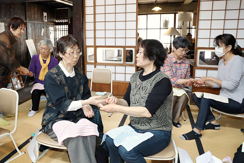 講座が終わるころには、手だけでなく体全体がポカポカとしてきたように感じた。他の受講者からも「血行が良くなった感じがする」「手のマッサージでこんなにゆったりした気持ちになれるなんて」と驚きの声が上がっていた。(上林陸来)