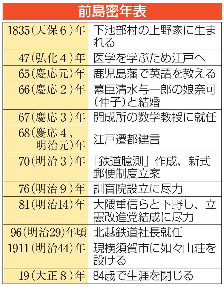 密は1870年、明治政府で交通や通信を改革する役職、駅逓権正(ごんのかみ)に就いた。日本を近代化するために情報や通信網の整備を重視していたという。