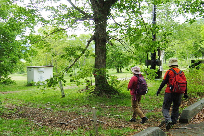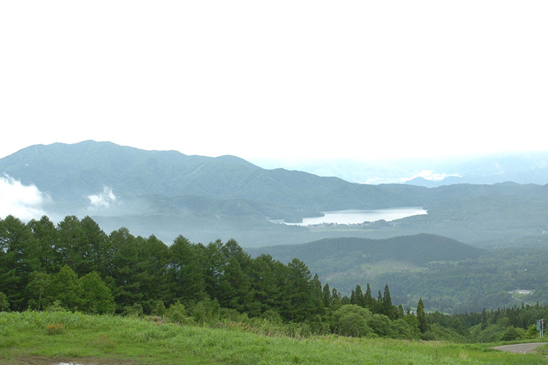 濃くなった緑の中、爽やかな高原の風を求めて、妙高市の妙高高原駅前から杉野沢の笹ケ峰高原を目指した。妙高高原町役場跡を通り、池の平のいもり池を右手に見ながら、車を走らせる。杉ノ原スキー場を過ぎ、つづら折りの山道で品川、山梨、熊谷、堺といった県外ナンバーの車とすれ違う。杉、白樺、ダケカンバの木々が美しい。眼下に長野県の野尻湖を望む。火打山・妙高山の登山道駐車場まで、およそ30分のドライブだった。