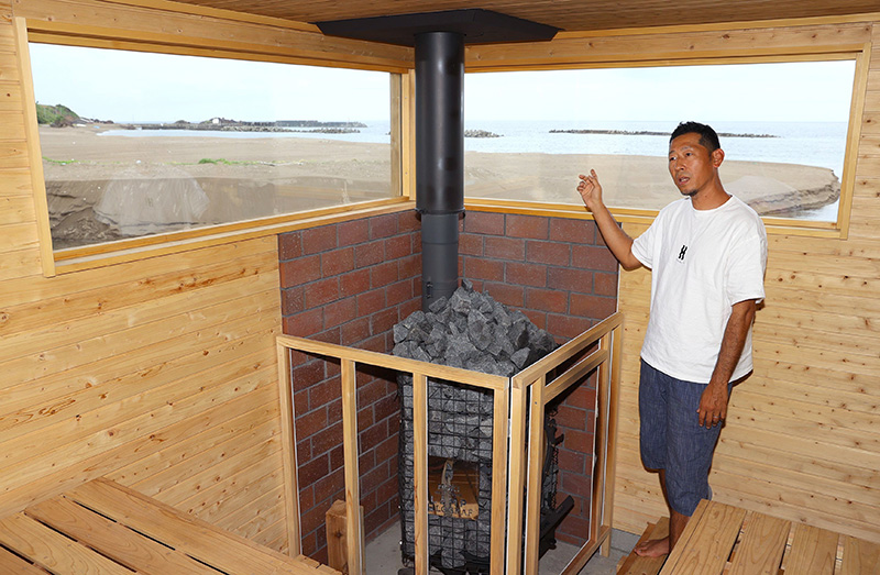 6月、旅館向かいの敷地にサウナ「宝来洲(ホライズン)」をオープンした。旅館の宿泊と組み合わせて、鯨波を「現代の湯治場」にしたいと考えている。