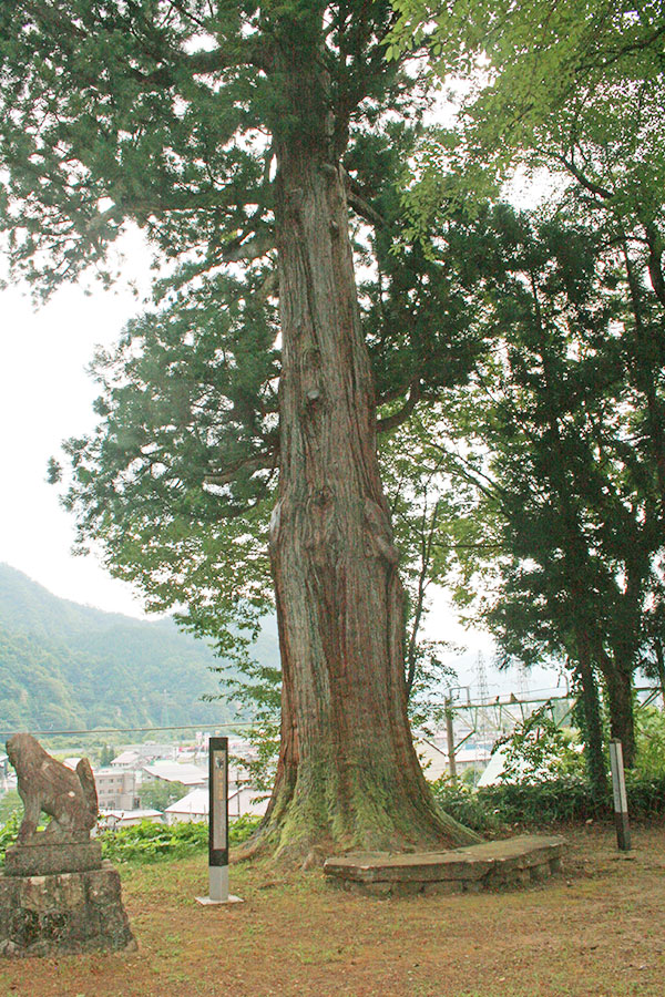 小説「雪国」の中に出てくる大杉と平らな石=湯沢町の諏訪社
