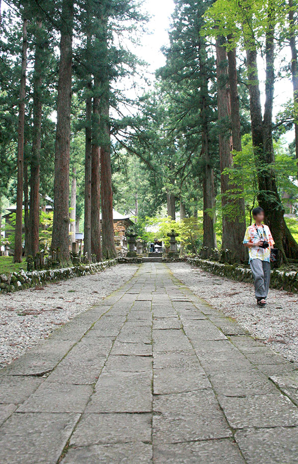 法華経の文字が記された石が埋められているという参道=南魚沼市の雲洞庵