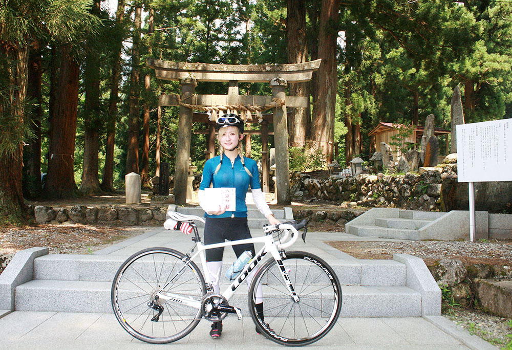 自転車で地域の魅力を発信するユーチューバー、MIHOさんの姿も。「ご朱印ライドは3回目。毎回いろんな御朱印や発見があって、自分の世界が広がります」と笑顔で話した。