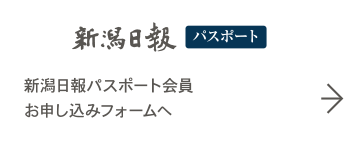 まずは、「新潟日報パスポート」へご登録ください。 速報ニュースやお得な情報などが届くうえ、無料でご利用いただけます。