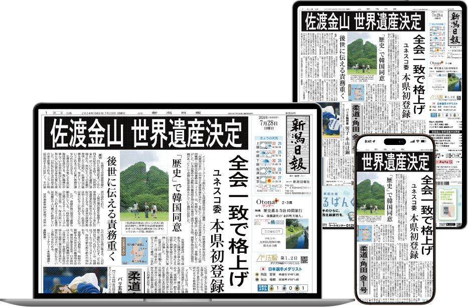 紙面の購読契約につきましては、新潟日報社では受け付けることができません。貴社と現在お取引のある新潟日報販売店までご連絡ください。
