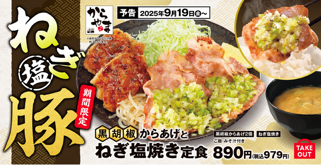 鶏も豚も一皿で!食べ応えとさっぱり感を両立した「黒胡椒からあげとねぎ塩焼き定食」からやまに新登場