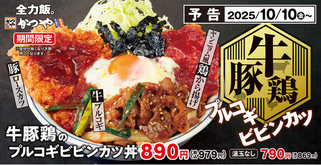 牛・豚・鶏の肉づくし!3種の肉を一度に楽しむ「牛豚鶏のプルコギビビンカツ丼」とんかつ専門店かつやに新登場