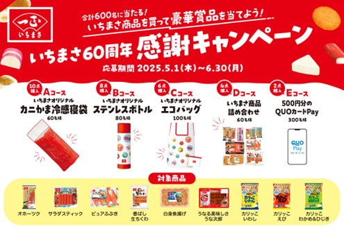 いちまさ(一正蒲鉾)創業60周年オリジナルグッズやQUOカードなど合計600名に当たる!感謝キャンペーンが5月1日よりスタート