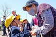 交通事故、ドーナツみたいに“0”にして 見附市で園児らが交通安全運動、ドーナツ配り啓発