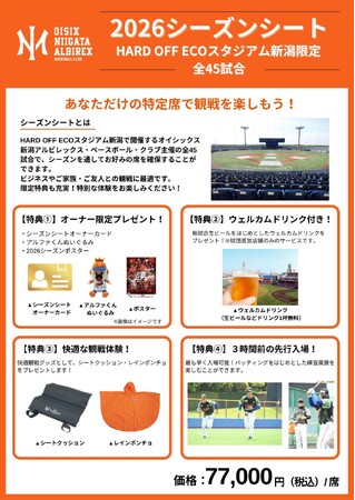 【オイシックス新潟】「2026シーズンシート」販売開始のお知らせ