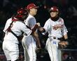 前田健がアクシデント降板 右ふくらはぎ痛めた様子