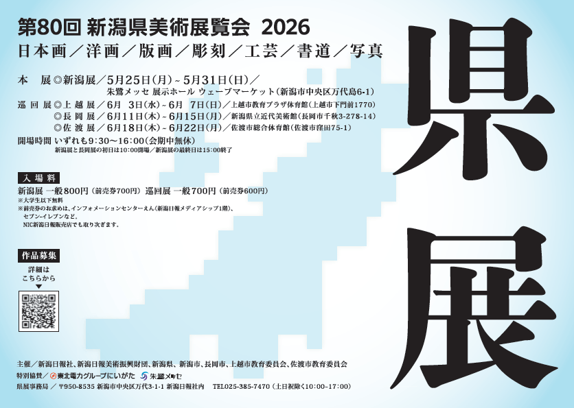 | 主催 | 新潟日報社、新潟日報美術振興財団、新潟県、新潟市、長岡市、上越市教育委員会、佐渡市教育委員会 |